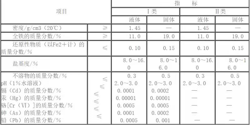 液體聚合硫酸鐵性能指標